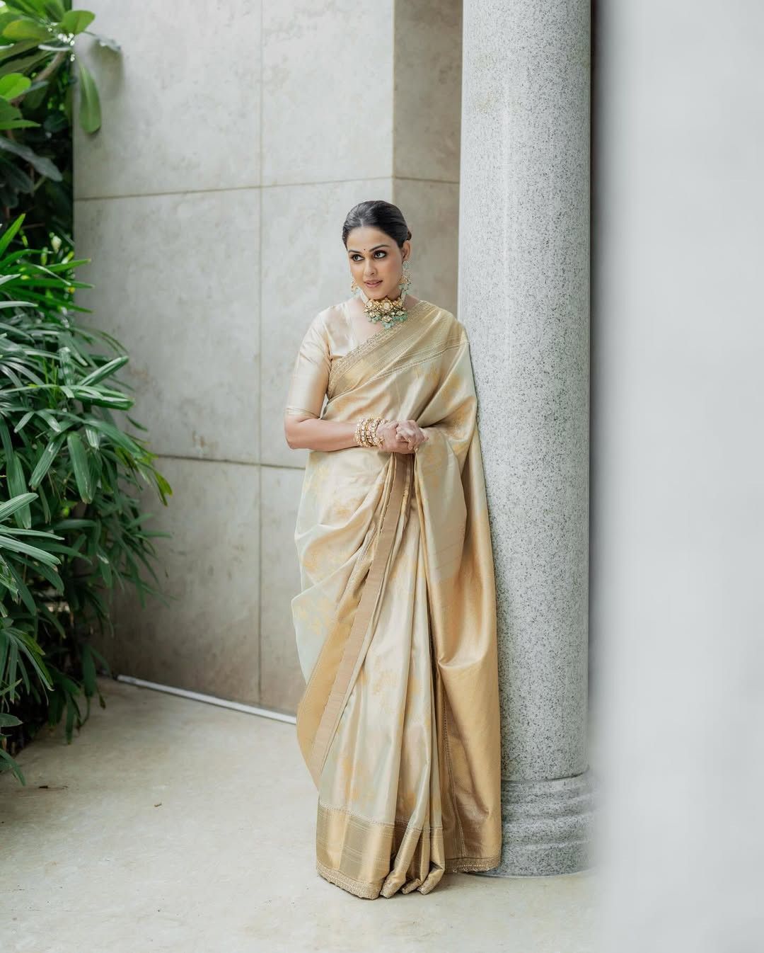 Vibrant and refreshing, this green saree radiates energy and elegance, that enhance its charm. Ideal for festive occasions, weddings, or daytime events, this saree brings a lively yet sophisticated appeal. Pair it with gold or contrasting accessories to make a striking statement.
