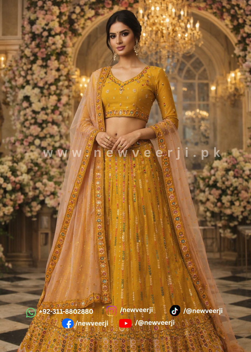 Indian Net Lehnga D#1008 Color Peach by Missgunni