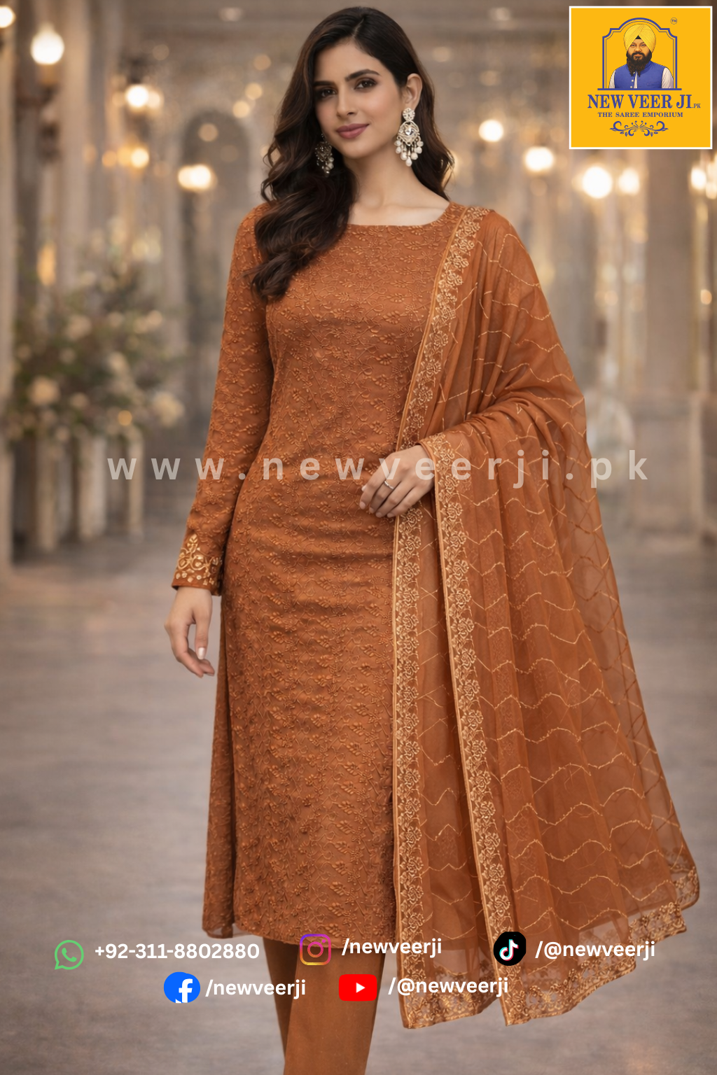 Explore different sarees available at New Veer Ji, designed to suit every occasion and style. From elegant embroidered sarees to lightweight chiffon, silk, and festive party wear, our collections offer a perfect blend of tradition and modern fashion. Each saree is crafted with attention to detail, premium fabrics, and refined finishing to ensure timeless appeal.
