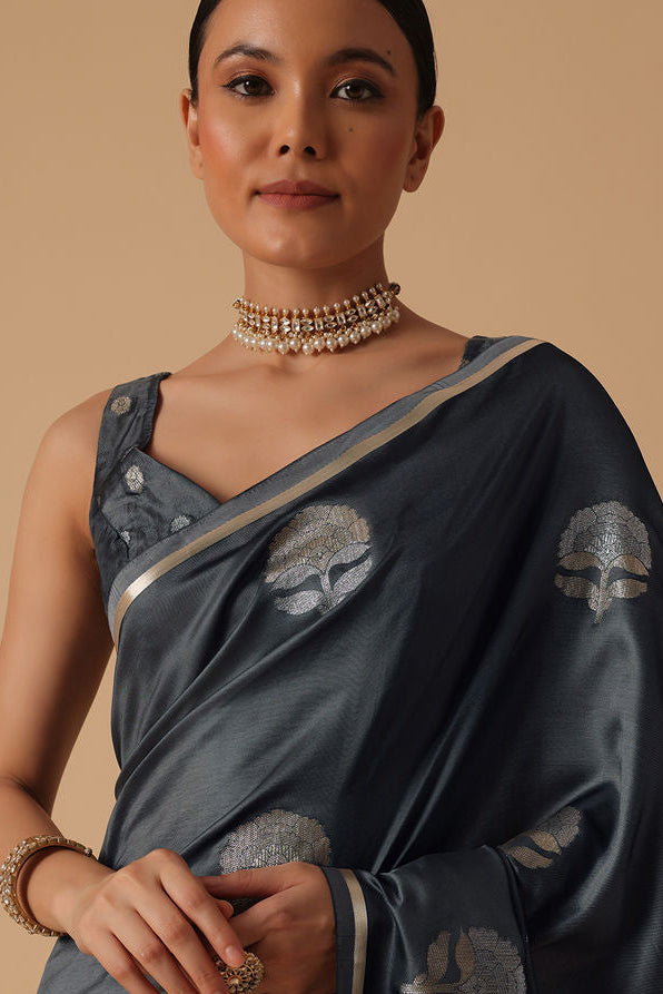Elegant and understated, this grey saree exudes timeless sophistication, it features a subtle sheen and delicate detailing that adds a touch of grace. Perfect for formal occasions or evening gatherings, this saree pairs effortlessly with statement jewelry, making you look effortlessly chic. Its neutral tone allows versatile styling, from contemporary blouses to classic designs.